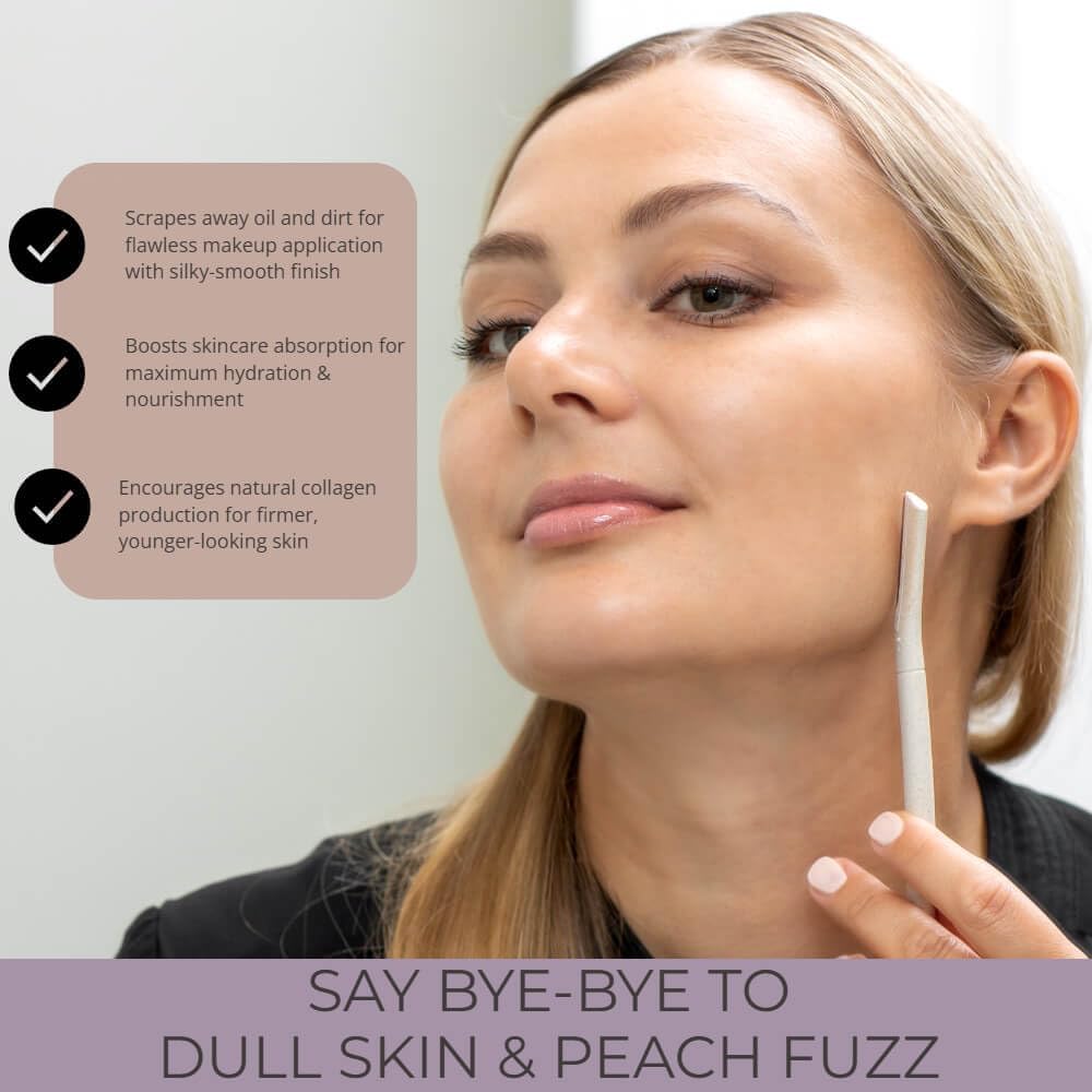 Bye-Bye Peach Fuzz: Quickly remove fine facial hair in minutes. Compact blade design makes it perfect to carry in your purse or pocket for quick touch-ups anywhere.